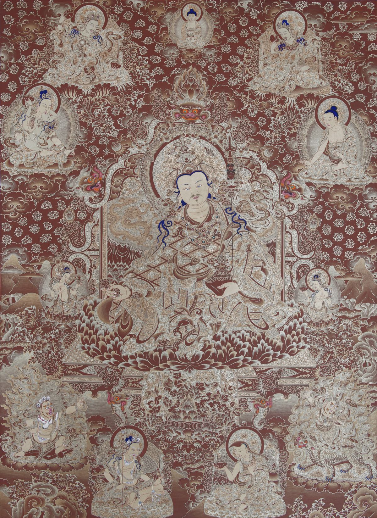 蓮花生大師,印度佛教史上最偉大的大成就者之一。公元八世紀,應藏王赤松德贊迎請入藏弘法,成功創立了西藏第一座佛、法、僧三寶齊全的佛教寺院——桑耶寺。他教導藏族弟子學習譯經,從印度迎請無垢友等大德入藏,將重要顯密經論譯成藏文,創建顯密經院及密宗道場,開創了在家出家的兩種圣者應供軌范,如是等等,奠定了西藏佛教的基礎。[藏傳佛教尊稱他為咕如仁波切(意為大寶上師)、鄔金仁波切(烏仗那寶)。通稱貝瑪迥乃(蓮花生)。據多羅那他于1610年所著《蓮花生傳》所載,約于摩揭陀國天護王時出生于鄔金國王族。圣誕日:藏歷六月初十。