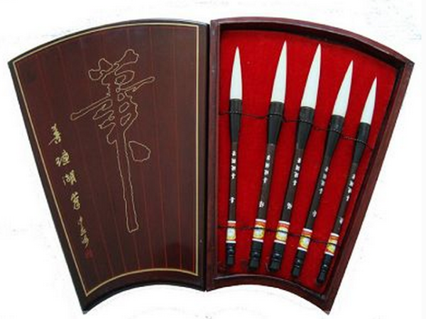 湖筆的第三個特點是品種多。目前以用途可分書寫繪畫、工業(yè)、特用三大類用筆;以性能分有軟、硬、兼三類。這三類所用的筆料就有十多種獸毛及其它禽羽等為原料,像硬毫中的黃鼠狼(鼬尾)、石獾、馬尾、豬鬃、山兔以富強性,落墨勁有力流利見長,軟毫的羊毫長而穎銳,運軟圓渾圓含墨飽滿,枯潤適用得當則墨色筆意變化無窮。兼毫則剛?cè)嵯酀藭水嫛H缢拼笮¢L短粗細來分那就有數(shù)百種之多,這和中國許多毛筆產(chǎn)地品種都類似的。