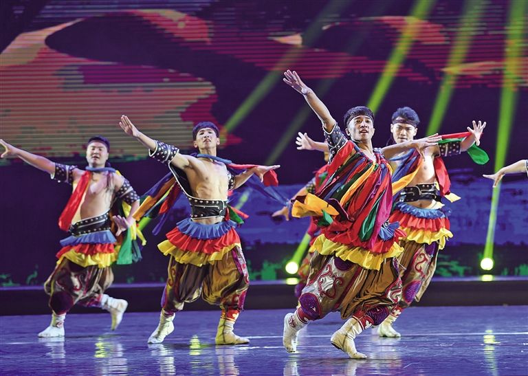 在第11屆中國(guó)舞蹈“荷花獎(jiǎng)”評(píng)選中,13位身著蒙古袍、顫顫巍巍的“爺爺”拄著拐杖奪得金獎(jiǎng)。“爺爺”手中的拐杖時(shí)而變成自拍桿,時(shí)而又變成馬頭琴,風(fēng)趣靈動(dòng)的蒙古舞與流行樂混搭得異常和諧,呼和浩特民族演藝集團(tuán)編創(chuàng)的舞蹈《爺爺們》如同不一樣的煙火,在二十一世紀(jì)的蒙古舞星空炸裂出別樣的絢爛。2019年,內(nèi)蒙古舞蹈迎來高光時(shí)刻,民族舞劇《草原英雄小姐妹》斬獲文華大獎(jiǎng),填補(bǔ)了內(nèi)蒙古在文華獎(jiǎng)?lì)I(lǐng)域的空白;由鄂爾多斯民族歌舞劇院編創(chuàng)的舞蹈作品《黑緞子坎肩》捧回第12屆中國(guó)舞蹈“荷花獎(jiǎng)”小金人。在似錦繁華迷人眼的舞壇,蒙古舞憑借勃發(fā)的民族生命力和強(qiáng)大的藝術(shù)感染力獨(dú)領(lǐng)風(fēng)騷。
