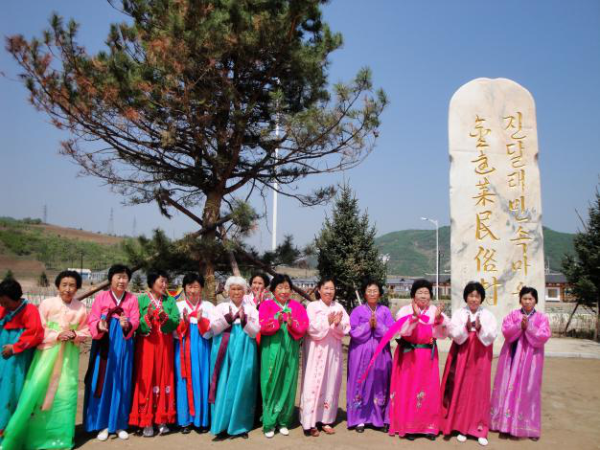 崇山之上,綠草地上,冬去春回之時,熱烈盛開的第一朵花就是金達萊。她是一朵柔軟的花,但有不屈的性格,是堅貞、美好、幸福的象征,于是,她深得一個民族的喜愛。她灼灼綻放了一樹濃郁的芳華,如同翩翩起舞的朝鮮人民。走進金達萊村,就能感受到朝鮮族人民的勤勞善良、熱情活潑。金達萊村隸屬吉林省延邊朝鮮族自治州和龍市西城鎮,是遠近聞名的朝鮮族特色村寨。