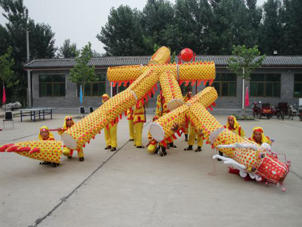 從清朝乾隆年間到民國初年,擺字龍燈是西陵守陵衙門拜年時的表演,舞龍者均為守陵人員。擺字龍燈也時常進皇宮表演,并多次受過皇封,慈禧太后曾賞賜龍衣兩套、紅蠟燭三箱。20世紀20年代以后,清西陵守陵機構瓦解,守陵人員轉為農民,擺字龍燈才真正成為表達農民意愿的舞種。