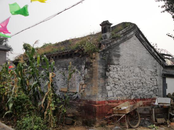 忠義村共398人,均為滿族。村子周圍是一道城墻式的圍墻,砌墻的青磚都是乾隆年間的老磚,不少磚上全有磚窯的戳記。由于最早來到這里的官差人,多為滿族正黃、鑲黃、正白“上三旗”,村內的街道象征性地規劃為“上”字形。營房的圍墻用青磚壘砌,高約3米,寬1米。圍墻只有兩個出入大門,一朝南,一朝西,古樸莊嚴,為清西陵各營房之獨具。兩座門上曾有對聯,西門上聯為:村落新成仍是當年梓里,下聯是:禾麻遍植居然今日桃源。南門上聯是:近水依山無異伊穎之地,下聯是:耕田鑿井同游熙皡之天。更有意味的是:北京的四合院坐北朝南,而這里青磚藍瓦的“大東房”則一律坐東朝西,面向皇陵,表示對安寢在皇陵中的帝王們的朝拜之意。這樣的建筑天下唯一。