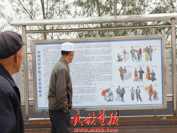 村中的展覽欄里有關(guān)于“中國信仰伊斯蘭教民族概括”的內(nèi)容