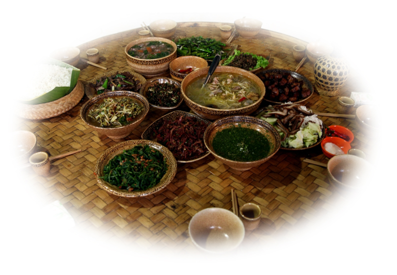 德昂族在飲食吃飯中也有著諸多禁忌,德昂族吃新飯時,首先喂牛和狗,以示對一年間犁耙的牛和日夜守護主人的狗的道謝。德昂人到別人家做客時,不能看著人家炒菜或到灶邊轉,吃飯時不能隨意撥弄盤中的食物。這樣的行為會被視為對主人的不尊敬和不禮貌。家中在接等客人的時候,上桌后必須要站著給客人斟酒、敬酒或挾菜,不能先自己吃。筷子必須置于碗的右邊,若置于左邊,就說明對客人不歡迎。盛飯時,勺子不能往外翻,否則就視為主客財水外流。客人吃飽飯后,在沒有放下手中的碗筷之前,主婦不能收拾碗筷,否則就被視為不讓客人吃飽飯。