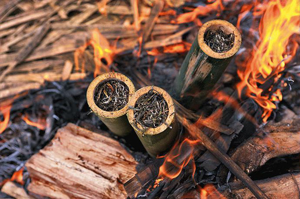 德昂族種茶的歷史悠久,茶在德昂族民間不僅是常備的飲料,也是饋贈親友的最好禮品。外出必須砍一段楠竹,削個斜口,放入茶葉注入泉水,用火燒開飲用,別有一番香味。德昂族也飲酸茶,又稱濕茶,古時稱之為谷茶或沽茶。制酸茶時在茶葉中加少許檳榔,放入大竹筒中壓實,密封筒口,存放一至兩個月發酵后取出,入嘴細嚼,味酸澀,能生津解渴,并有解暑清熱、消食的作用。
