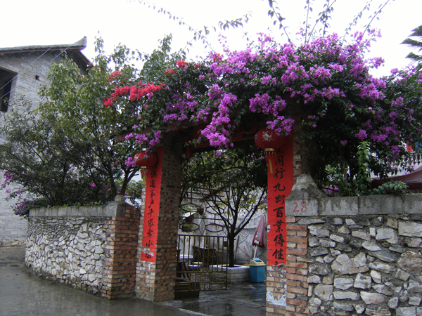 徜徉寨中,最常碰見的是一株株參天的古樹,最少都有幾百年的樹齡了。古樹和村寨誰更年長,誰也說不清。布依族崇尚大自然,長過幾十年的樹都不會去砍伐。村中白石橋畔有一株樹齡超過900年的黃葛,黃葛樹根下又長出一株棠梨合二為一,根與根相連,枝與枝相擁,村里的老人說這是夫妻樹,是神靈告誡村民要家庭和睦,夫妻相敬相愛。