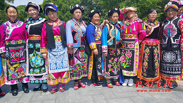 婦女們的衣物就是一個移動的羌繡展示