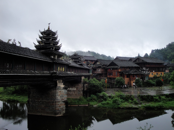 傳說古夜郎國天子路過此地,被其濃郁的民族風情所迷戀,故建“皇都”城。由頭寨、尾寨、新寨、盤寨等四村組成,前三個寨子連為一體,新寨則是處于一個半島上,由風雨橋(普修橋)和公路相通,與另三個寨子隔河相望。皇都侗寨歷史悠久,是侗族村寨保留最完整的地方之一,也是侗民族民風民俗最為完整亮麗的地區。現村中有吊角樓500余座,形成氣勢磅礴的侗族吊角樓群。寨中現存鼓樓4座,風雨橋1座。鼓樓里、涼亭內、風雨橋邊,處處琴聲悠揚,歌聲如潮。