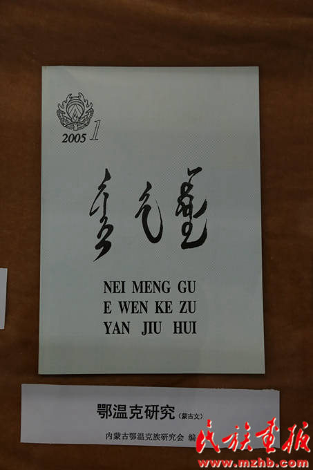 內蒙古呼倫貝爾市達斡爾、鄂溫克、鄂倫春民族文獻展展出的鄂溫克文獻(特木爾巴根 攝影)