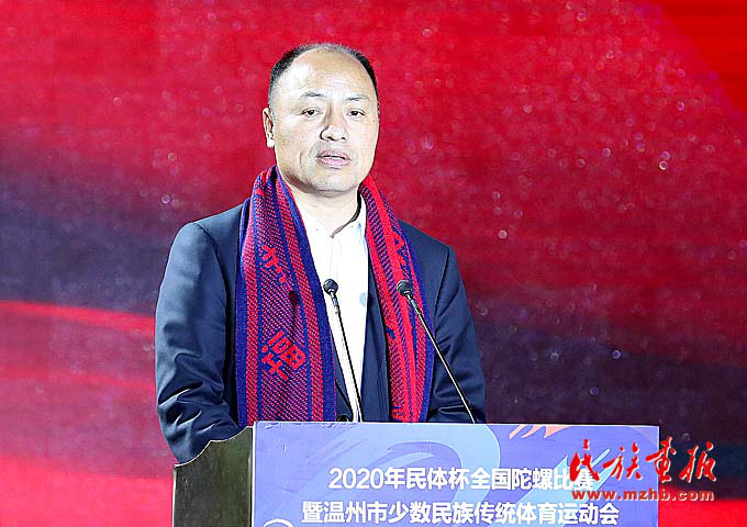 為發(fā)展民族傳統(tǒng)文化體育,促進(jìn)民族交往交流交融,推進(jìn)民族團(tuán)結(jié)進(jìn)步事業(yè),不斷鑄牢中華民族共同體意識(shí),11月27日,2020“民體杯”全國(guó)陀螺比賽暨溫州市少數(shù)民族傳統(tǒng)體育運(yùn)動(dòng)會(huì)在浙江省溫州市鹿城區(qū)白鹿洲公園隆重開(kāi)幕。浙江省委常委、溫州市委書(shū)記陳偉俊,國(guó)家民委監(jiān)督檢查司司長(zhǎng)隋青,浙江省民宗委副主任鐘新章,溫州市委常委、統(tǒng)戰(zhàn)部部長(zhǎng)施艾珠,市委常委、秘書(shū)長(zhǎng)王軍,市人大常委會(huì)副主任張洪國(guó),市人民政府副市長(zhǎng)陳應(yīng)許,市政協(xié)副主席諸葛啟釧等領(lǐng)導(dǎo)出席開(kāi)幕式,浙江省、市、縣民族工作相關(guān)單位負(fù)責(zé)人及裁判員、教練員、運(yùn)動(dòng)員代表600余人參加了開(kāi)幕式。