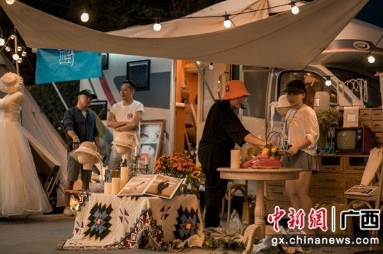 活動現場設置復古溜冰場、迪斯科歌舞廳、戶外劇本殺、露天電影院、帳篷市集等區域,不同主題的復古音樂派對、先鋒視覺藝術展、廣西網紅美食、本土潮牌服飾衍生品等展位,開展“人類高質量相親局”等趣味互動,“廣西文旅消費券”福利加持,讓南寧市民在生活節買得實惠、吃得放心、玩得開心,營造夏夜休閑熱烈氛圍。