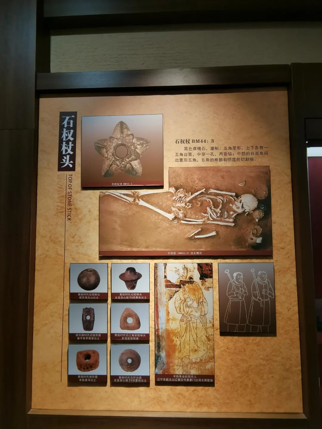 部落結構;南寶遺存中發現一件青石制成的石權杖首和一批與相關的玉制品引人注目,這些應是部落酋長或具首領身份的聚落成員標志,反映出南寶聚落已經出現等級差別。遺址中發現的四個完整骨角質冠飾,出土時均套箍在遺骸頭顱上,顯然是一種帽子,是戴冠人特殊身份和地位的象征。