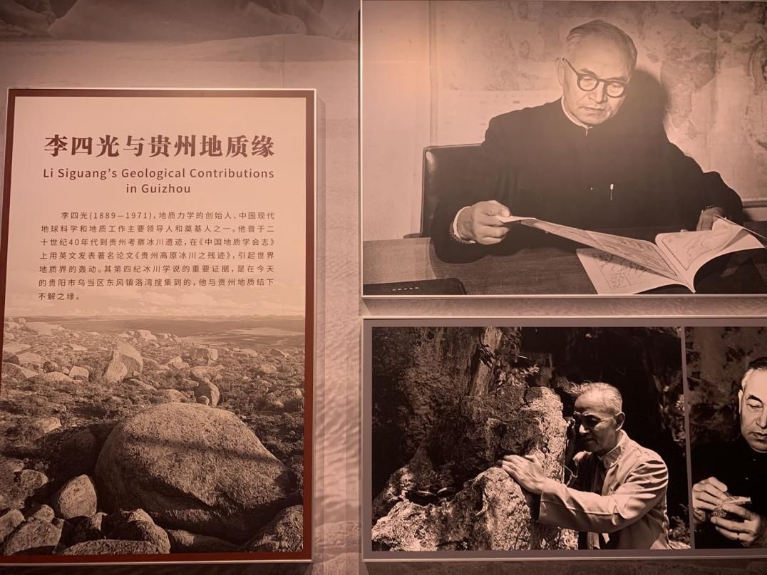 “奮進貴州”以“貴州自然資源發展歷程”為主題,運用雕塑、場景復原、歷史照片、珍貴文物等展示媒介,講述各個時期自然資源人用智慧和汗水,為國家經濟建設和社會發展作出的卓越貢獻。此外還展出了多件(套)文物,不乏李四光等老一輩地質學家的“貴州記憶”。