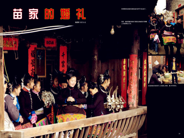 第二天是新娘出嫁的日子。早上七點(diǎn),新娘的姑嫂和姐妹就早早地來到新娘家為新娘梳妝打扮,有的給新娘梳頭,有的給新娘穿衣,有的給新娘佩帶銀飾,女孩子們唧唧喳喳一陣熱鬧。經(jīng)過一個(gè)多小時(shí)的梳妝打扮,新娘就要出門了。