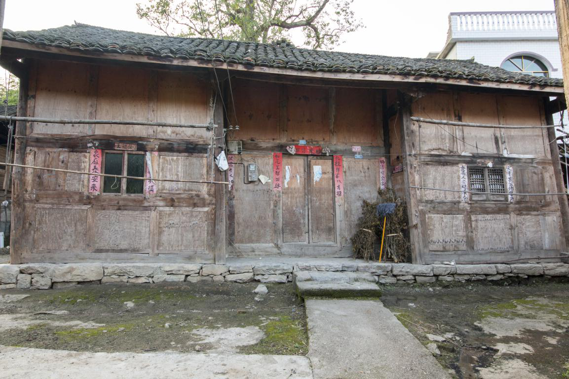 批林村傳統民居為全木結構的吞口屋,常見為三間并列,上下兩層。第一層居中的房屋為堂屋,屋外壁內縮一柱形成吞口。房屋底下還有一層壘砌平整的石基,用以將吞口屋與土層隔離,達到防潮防濕的目的。石基也隨著人們的踩踏,變得圓潤,與傳統建筑一起,成為了歷史的見證者之一。時間的沖滌,石基也開始泛起了亮黑色。