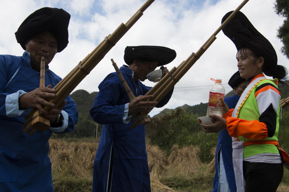 批林村蘆笙曲不限定地點,只要蘆笙響起,田間地頭,都可以起跳。蘆笙曲曲調深沉而又悠揚,配著藍天白云,稻草風香,整體舞蹈與天地相合,令人沉浸其中。
